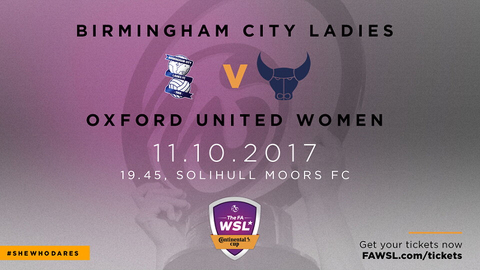 The return of the FA WSL Continental Tyres Cup sees FA WSL 2 side Oxford travel to Solihull on Tuesday 11th October (kick-off 7.45pm) for a clash with FA WSL 1’s Birmingham City.