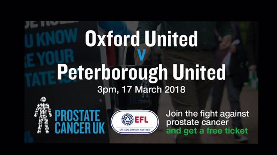 Oxford United are teaming up with Prostate Cancer UK this weekend to fight the most common cancer in men through football. This season hundreds of volunteers will be collecting money outside stadiums up and down the country for Prostate Cancer UK. Join the team atthe U's this Saturday to raise vital funds and awareness of the disease and receive a free ticket to the match in return.