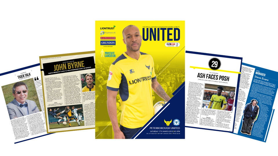 With Peterborough United the visitors to the Kassam Stadium tomorrow (3pm) we have produced another of our award-winning programmes to mark the occasion. It's essential reading for all Oxford fans, containing new chairman Sumrith 'Tiger' Thanakarnjanasuth's first programme notes.