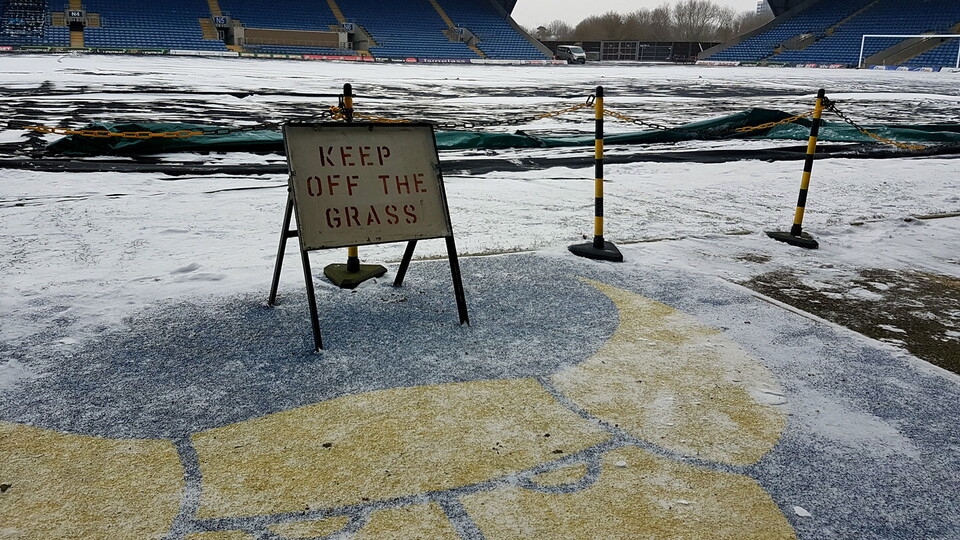 An inspection by an EFL referee took place this afternoon after continually freezing temperatures at Grenoble Road. Covers had been on since last Thursday but with temperatures dropping as low as -12 at nearby Benson last night and no improvement forecast for the next few days a decision was made to postpone the game.