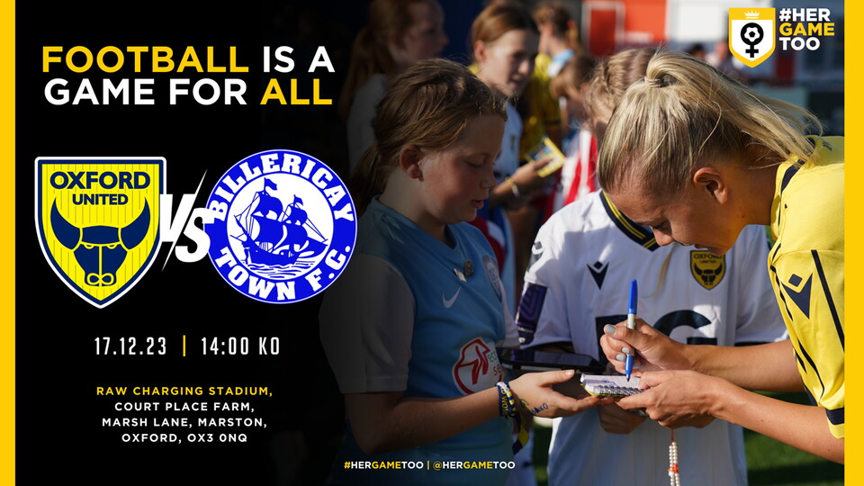 Oxford United Women are proud to dedicate Sunday's home game against Billericay Town Women to the Her Game Too campaign tackling sexist abuse within football.