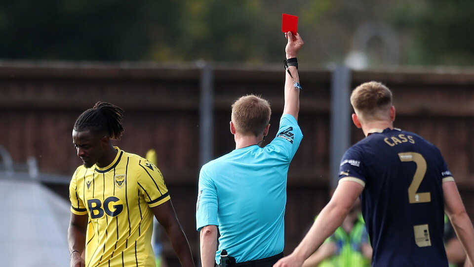 Mark Harris was shown a straight red card and is therefore suspended for three first team matches in Sky Bet League 1. Those are Fleetwood Town away, Exeter City at home and Stevenage away